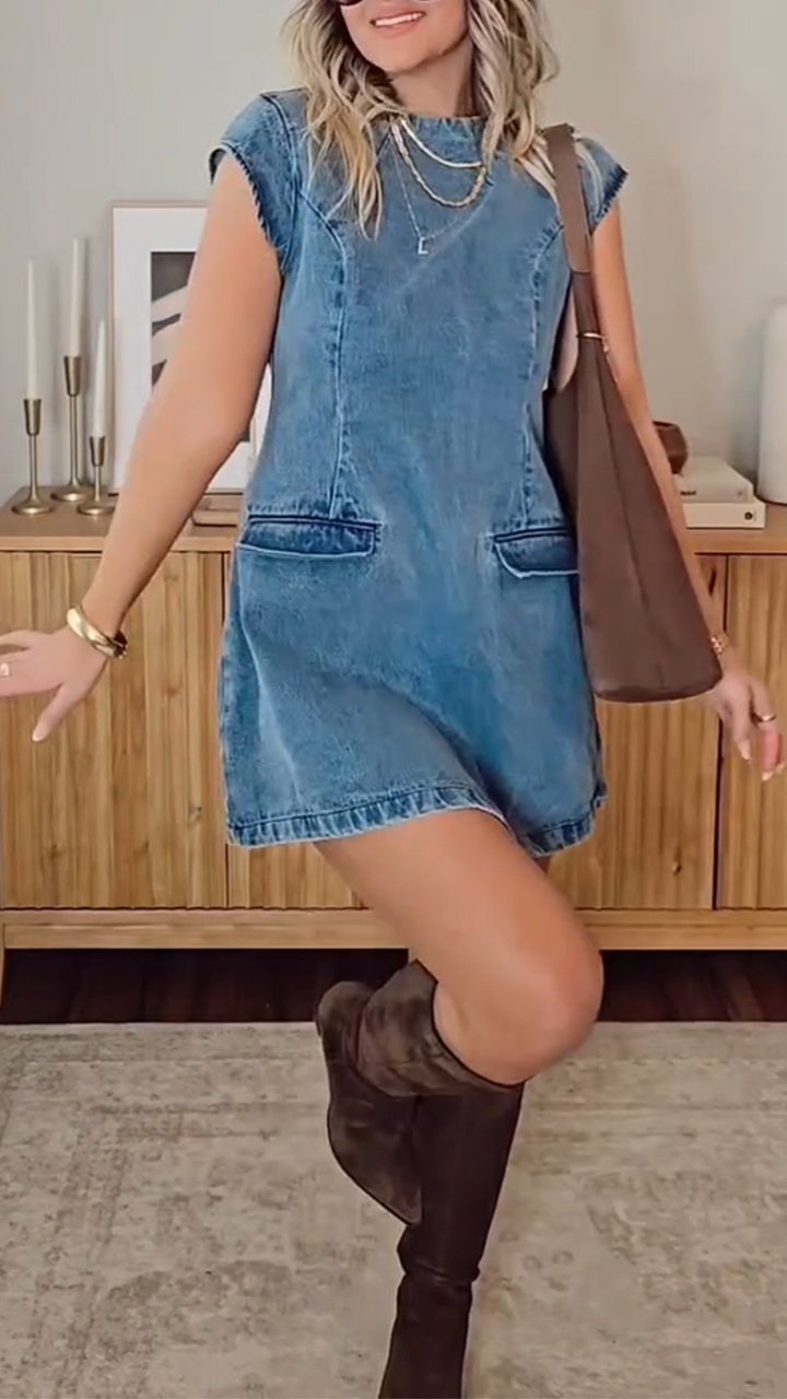 Womens Split Spliced Denim Dress + Short Jacket Casual Set