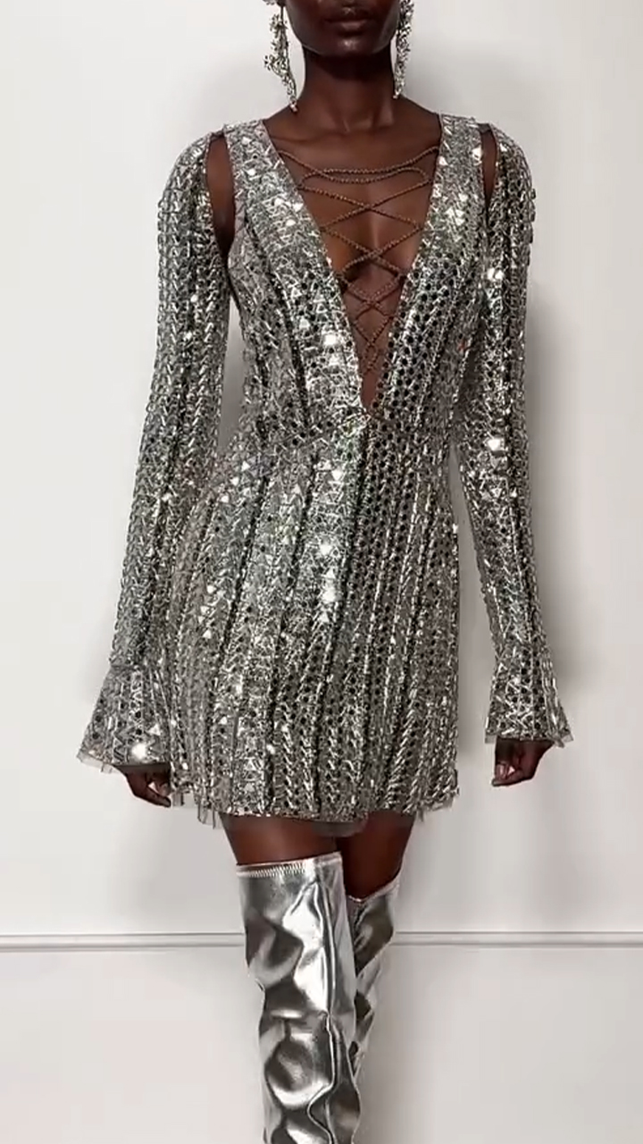 Women Deep V-neck Heavy Duty Temperament Casual Dress