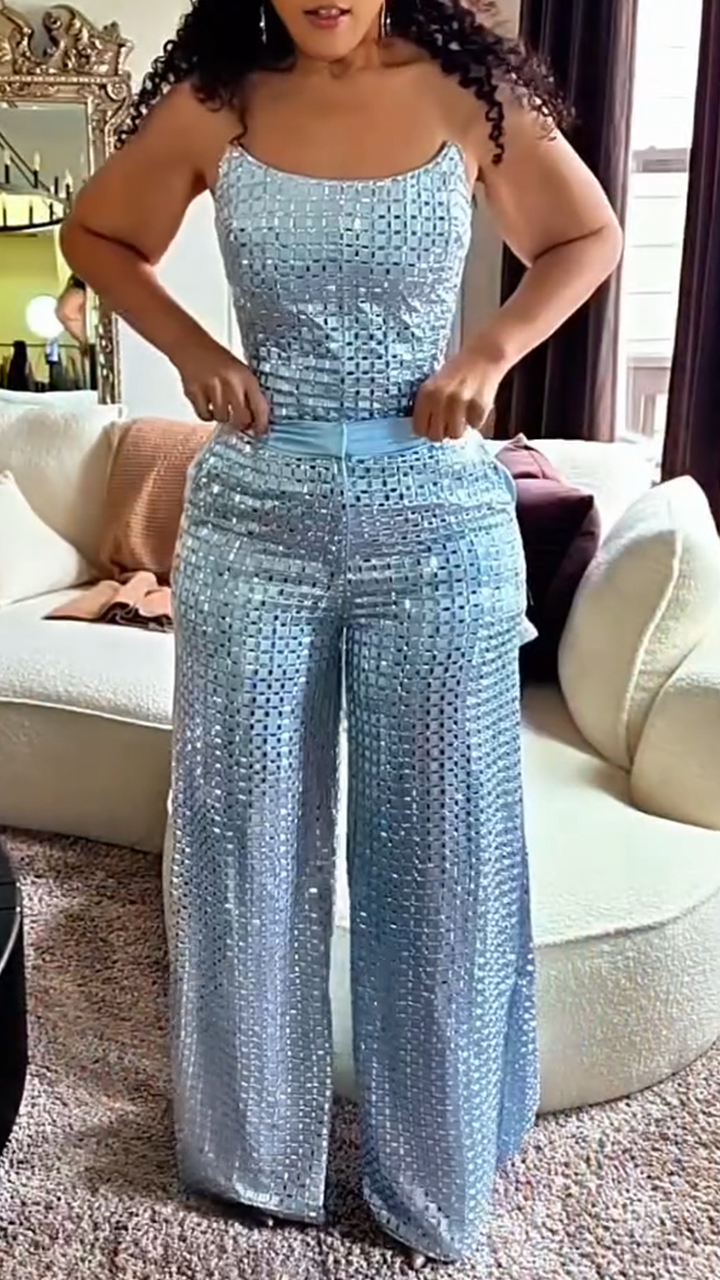 Women Suspender Hot Diamond Top + Pants Sexy Casual Suit