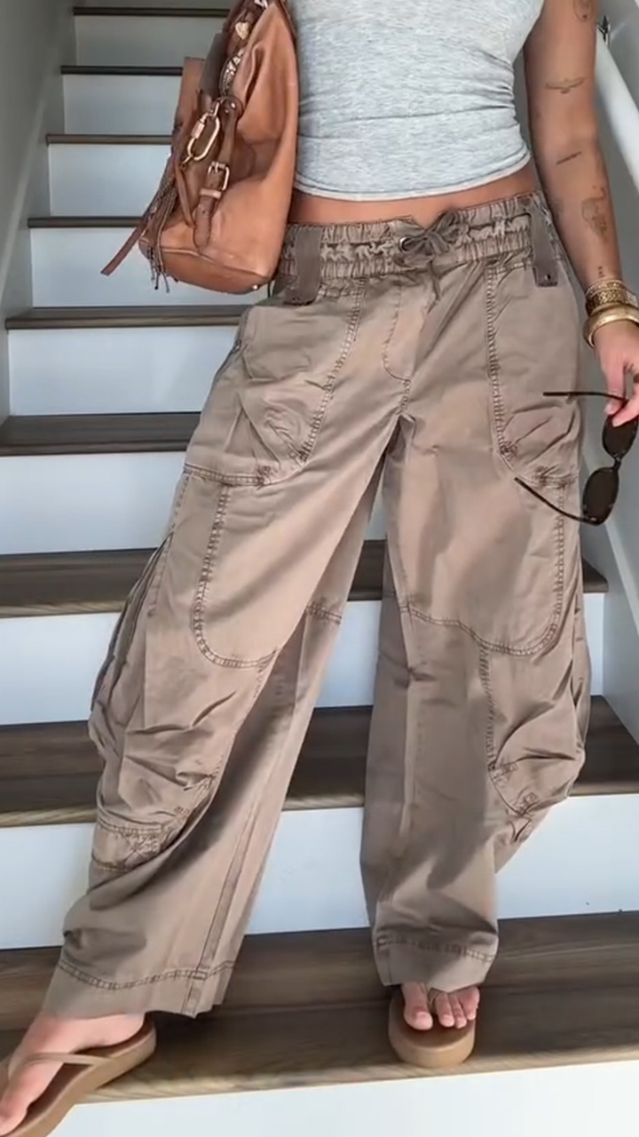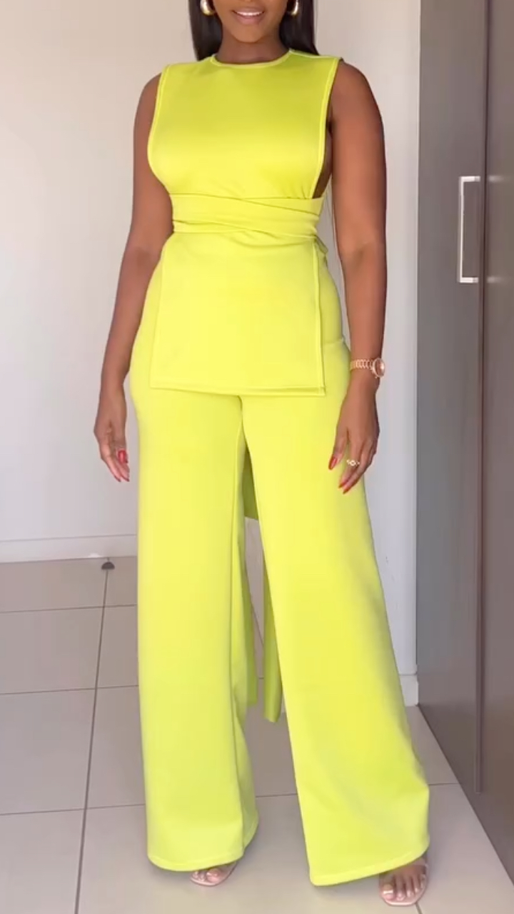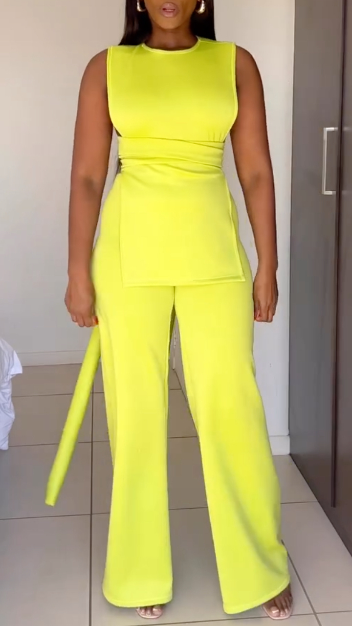 Women's Round Neck Tie-up Top + Fluorescent Casual Pants Set