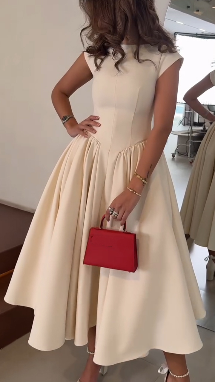 Women's Round Neck Three-dimensional Tailoring A-line Temperament Dress