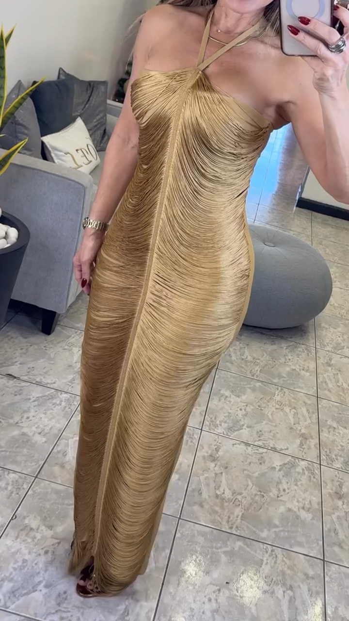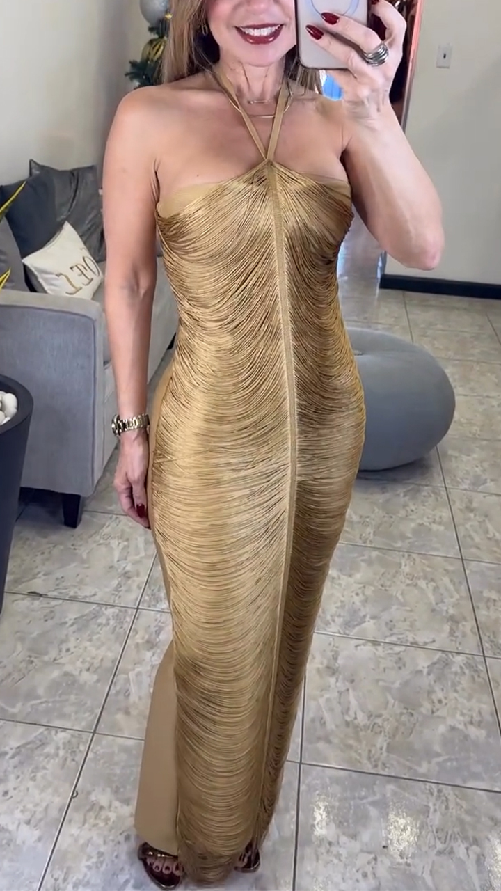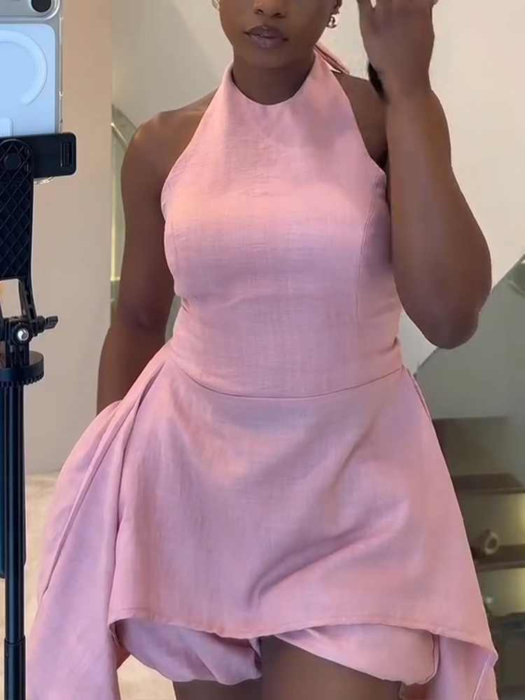 Women Halter Neck Solid Color Casual Dress