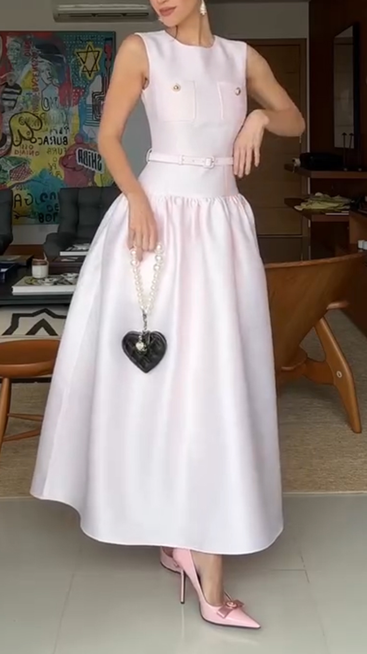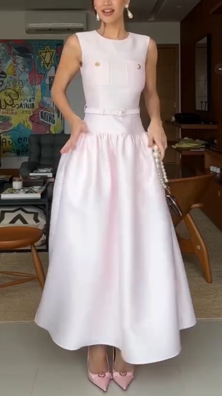 Women Round Neck Back Hollow Elegant Temperament Dress