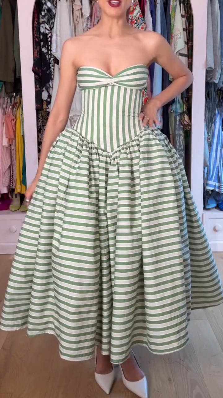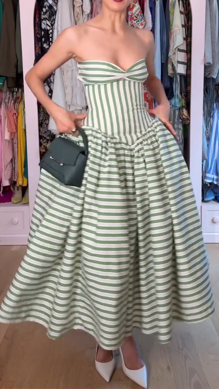 Women Strapless Patchwork Vertical Line Elegant Temperament Dress