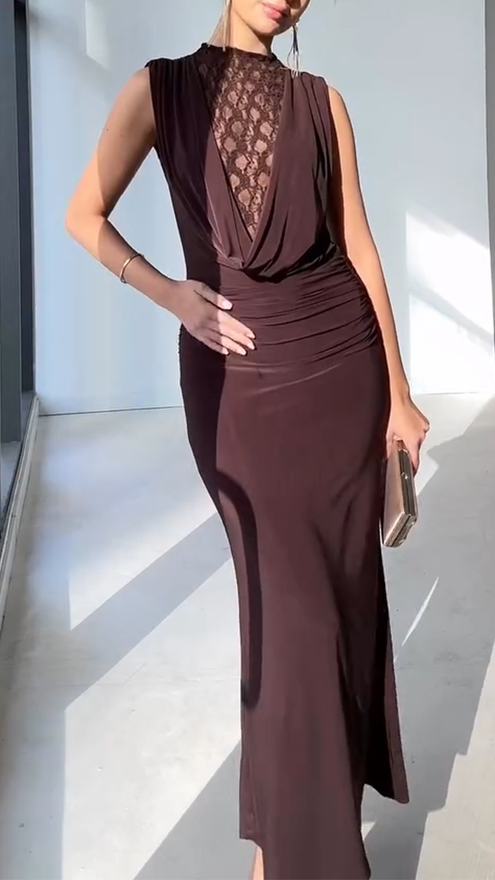 Women Neck Hanging Patchwork Elegant Temperament Dinner Party Style Dress