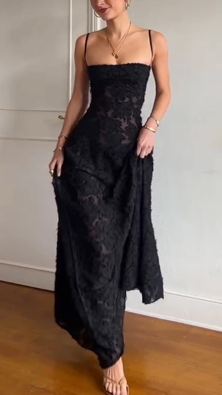 Women Inner Camisole Jumpsuit+ See Through Dress Elegant Temperament Set