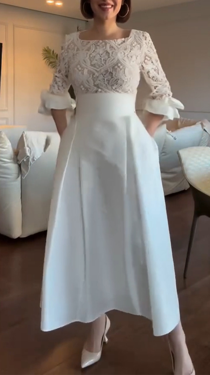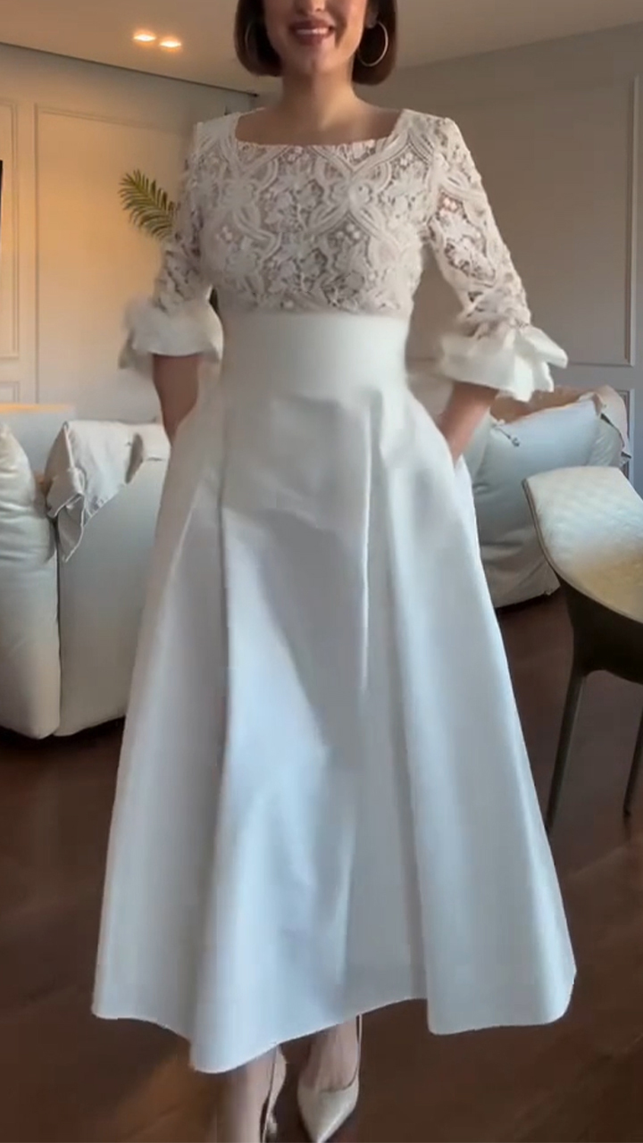 Women Square Collar Patterned Patchwork Elegant Temperament Dress