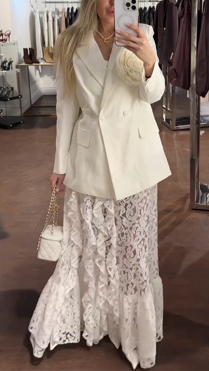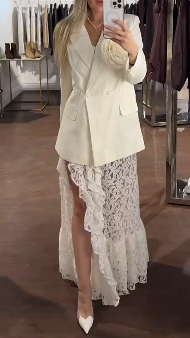 Women Collar Jacket+ Printed See Through Half Skirt Elegant Temperament Set