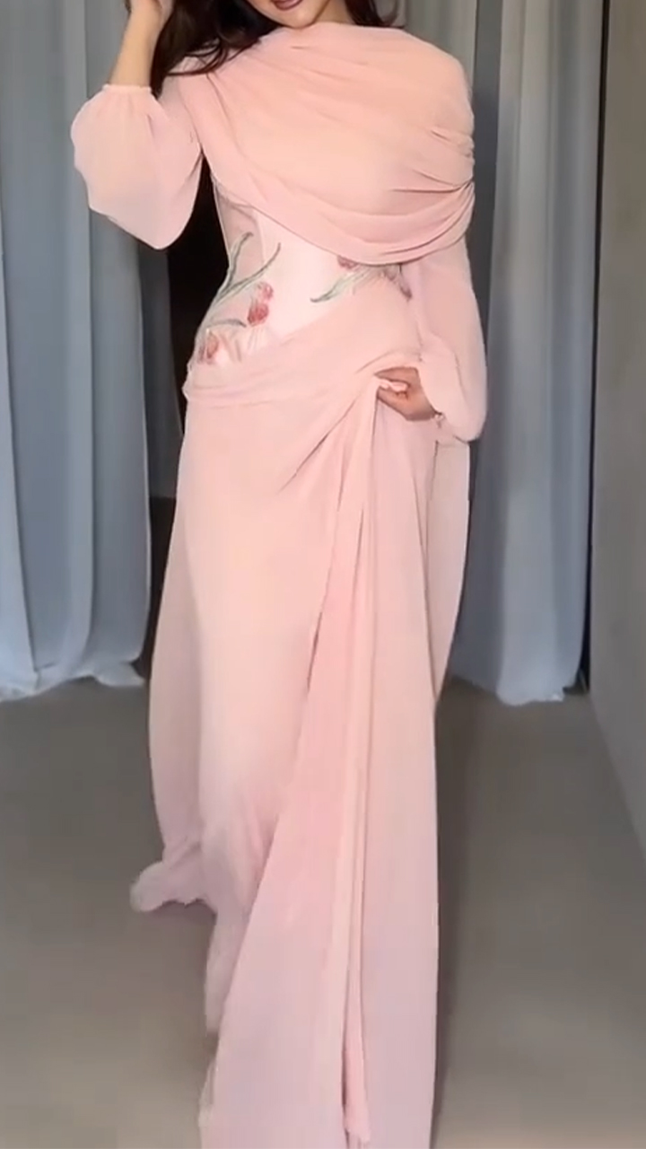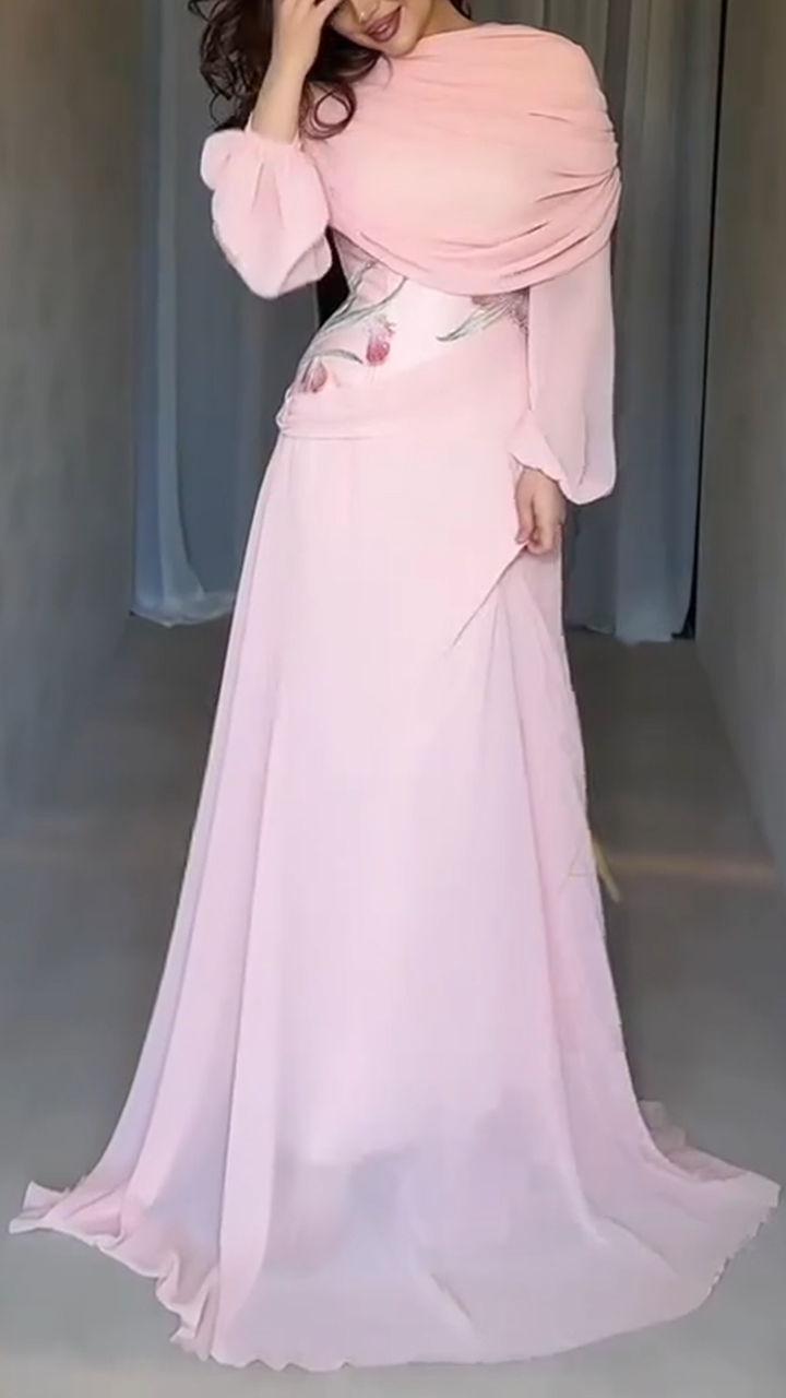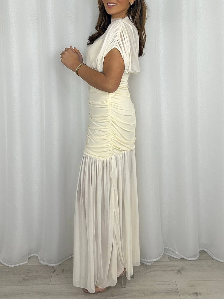 Women Round Neck Irregular Solid Color Elegant Temperament Dinner Style Dress