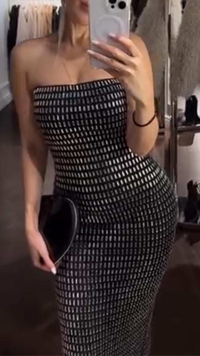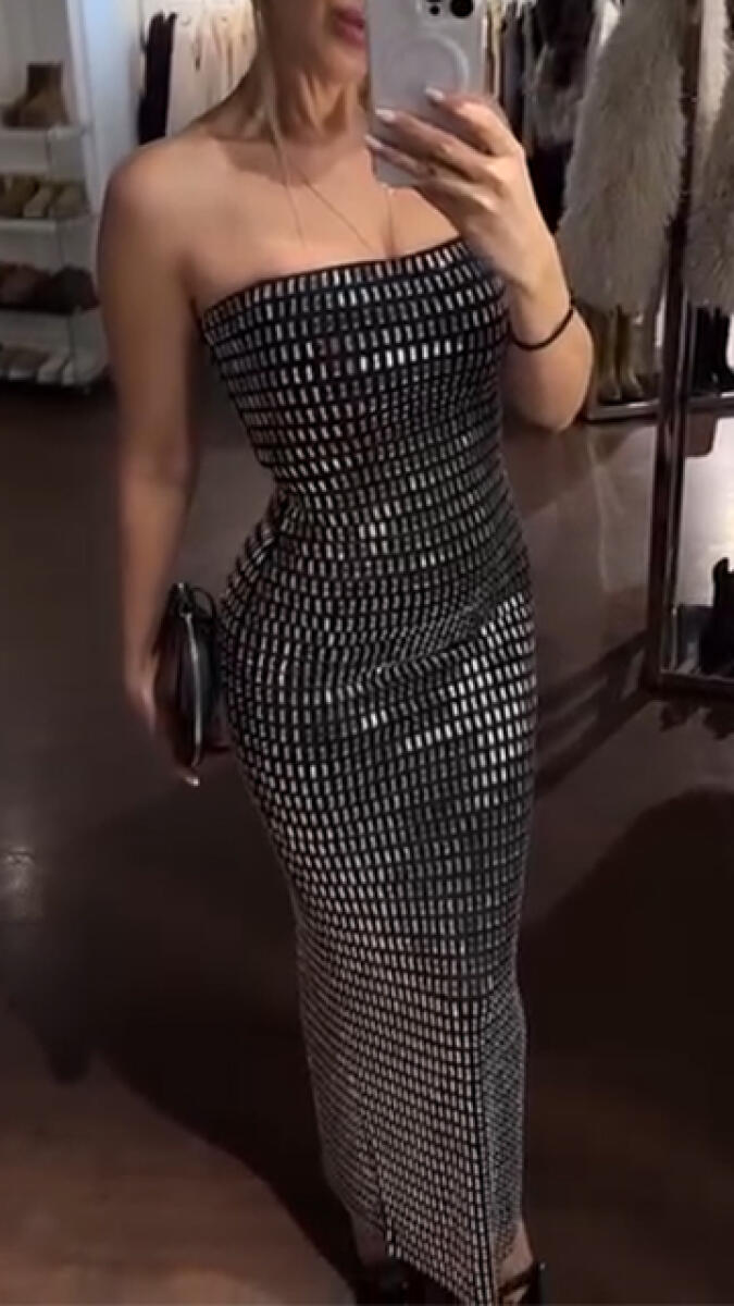 Women Strapless Hot Stamping Rhinestone Elegant Temperament Dinner Party Dress