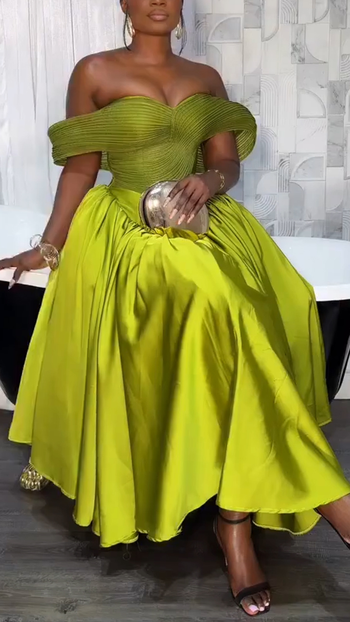 Women's Elegant Off-shoulder Waist-cinching Dress