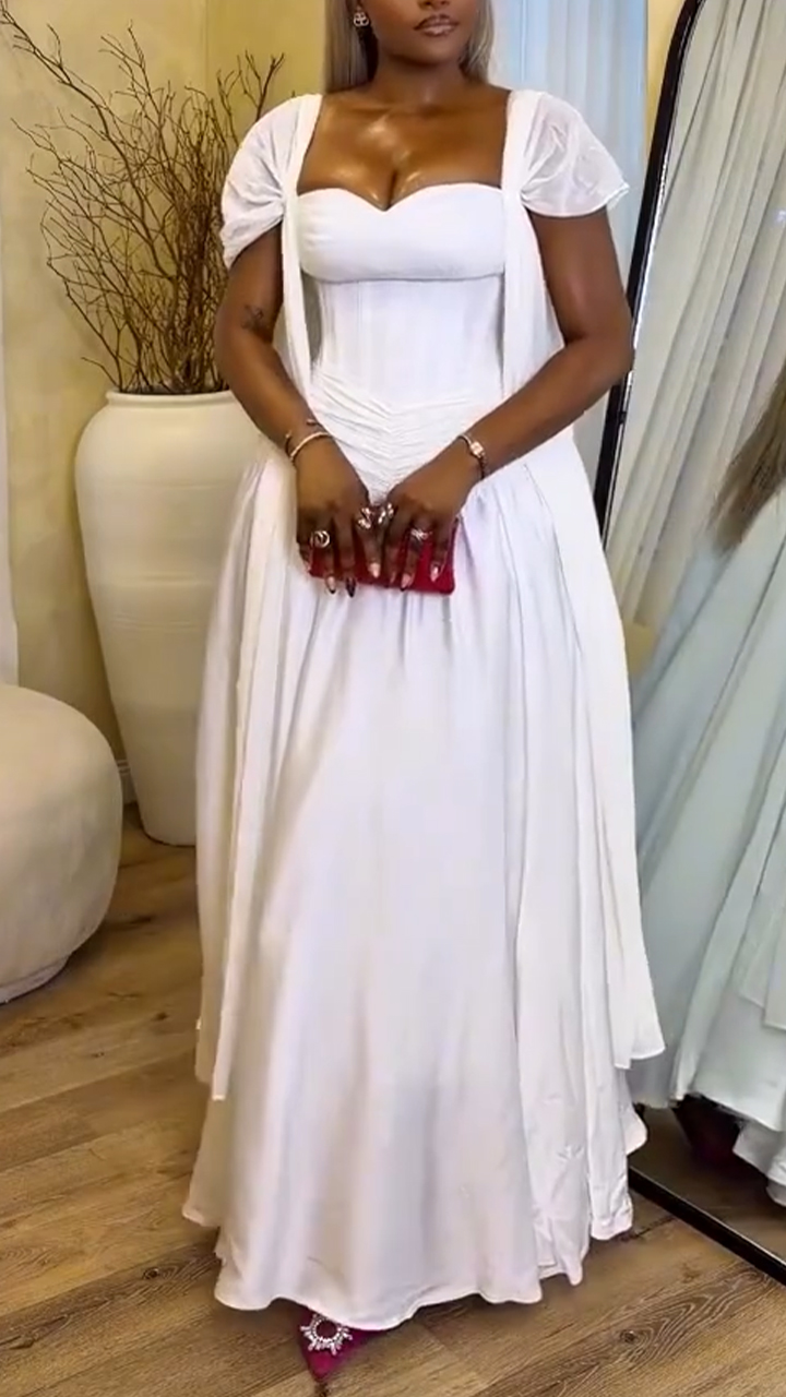 Women's Cap Sleeve Fitted Waist Elegant Dress