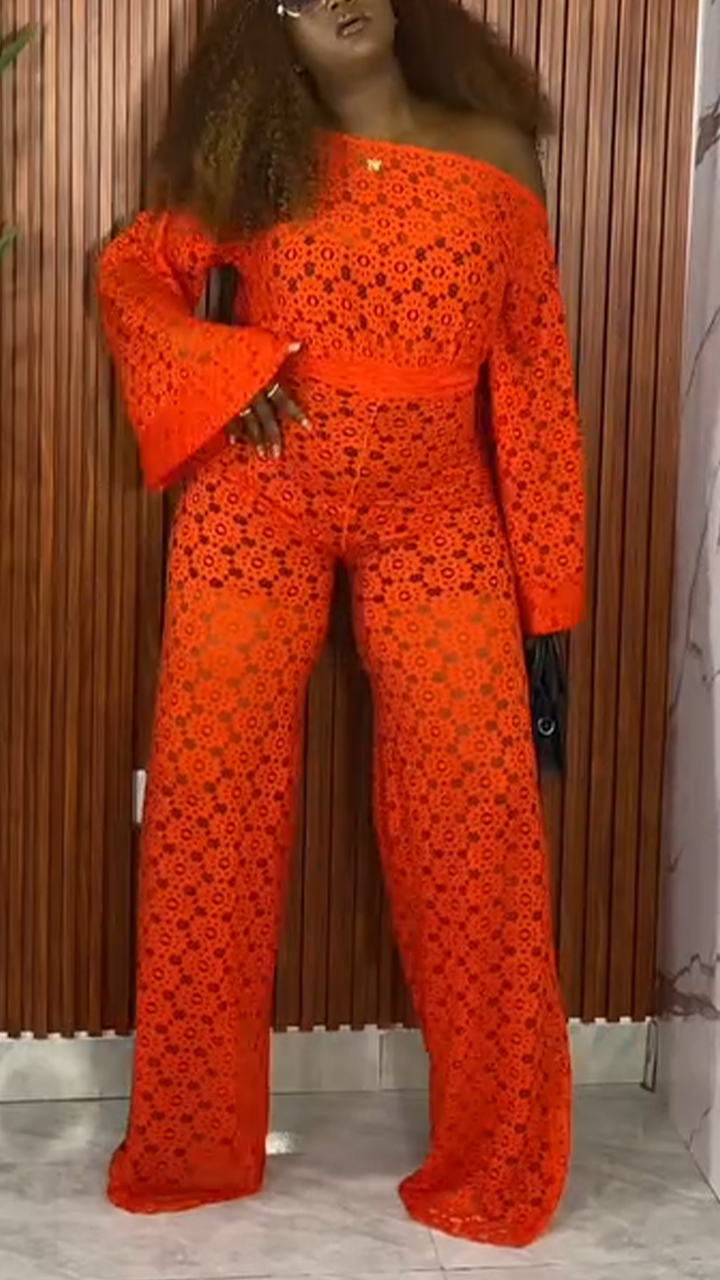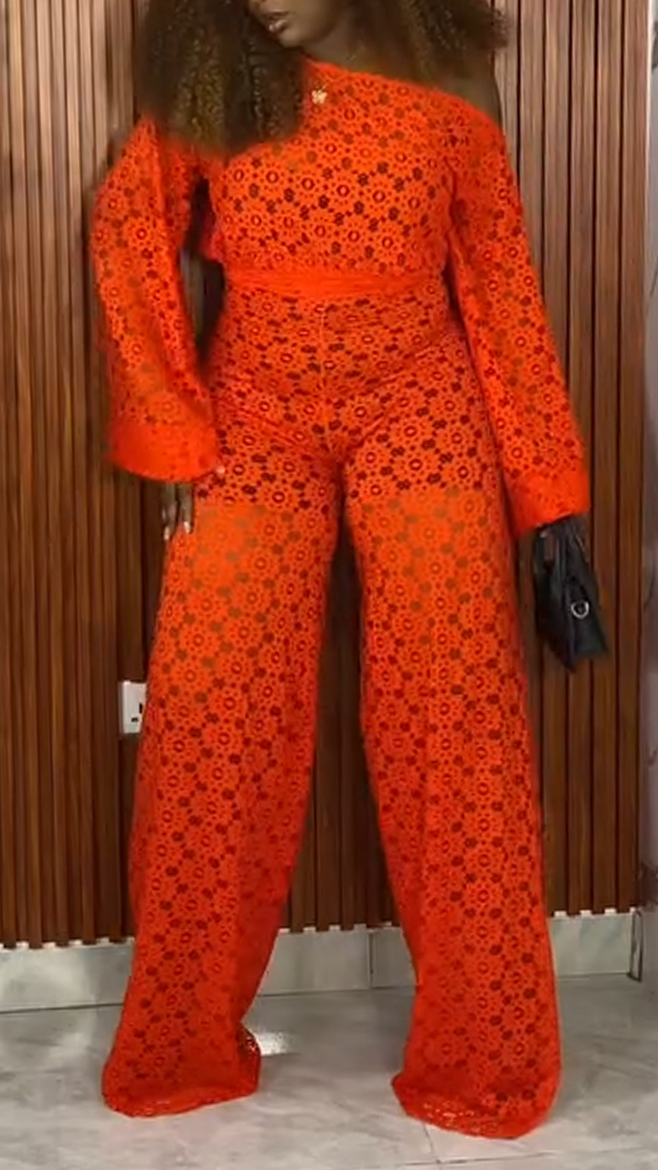 Women's Lapel Top + Trousers Hollow Casual Suit