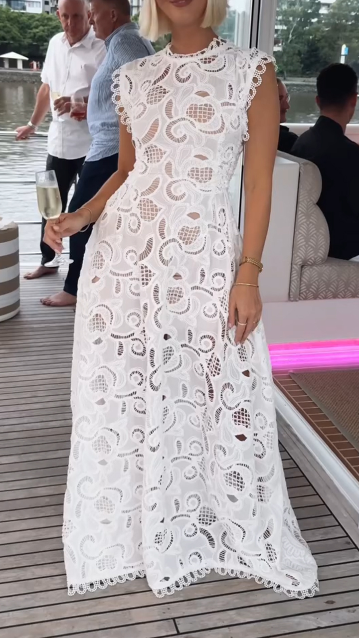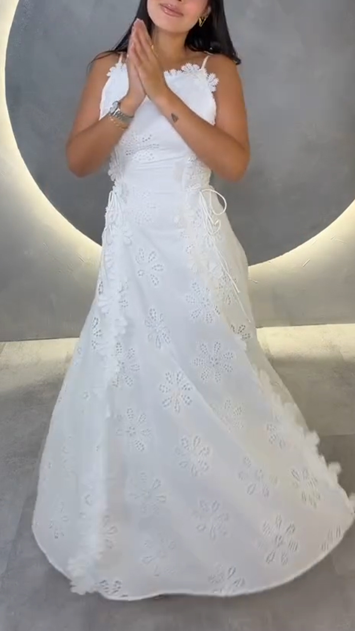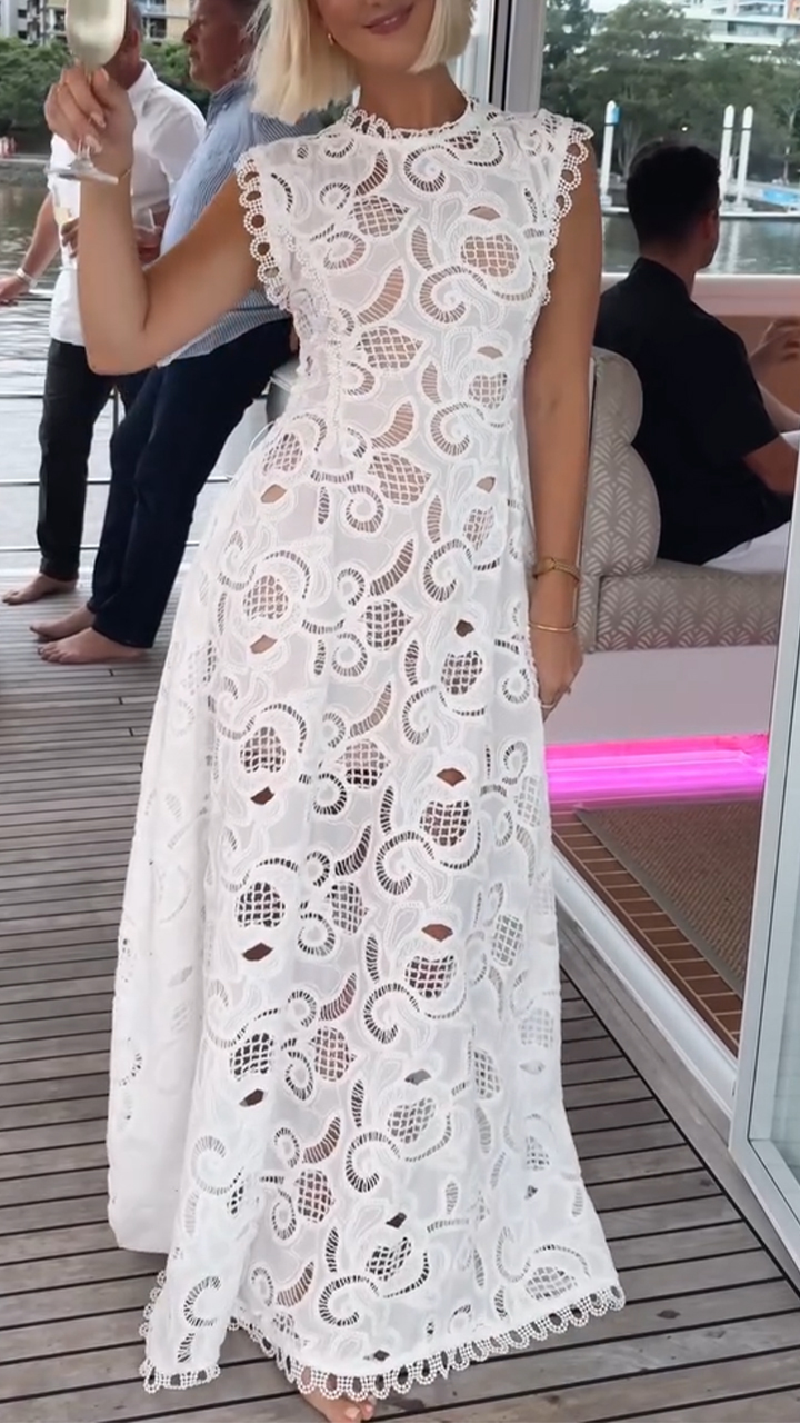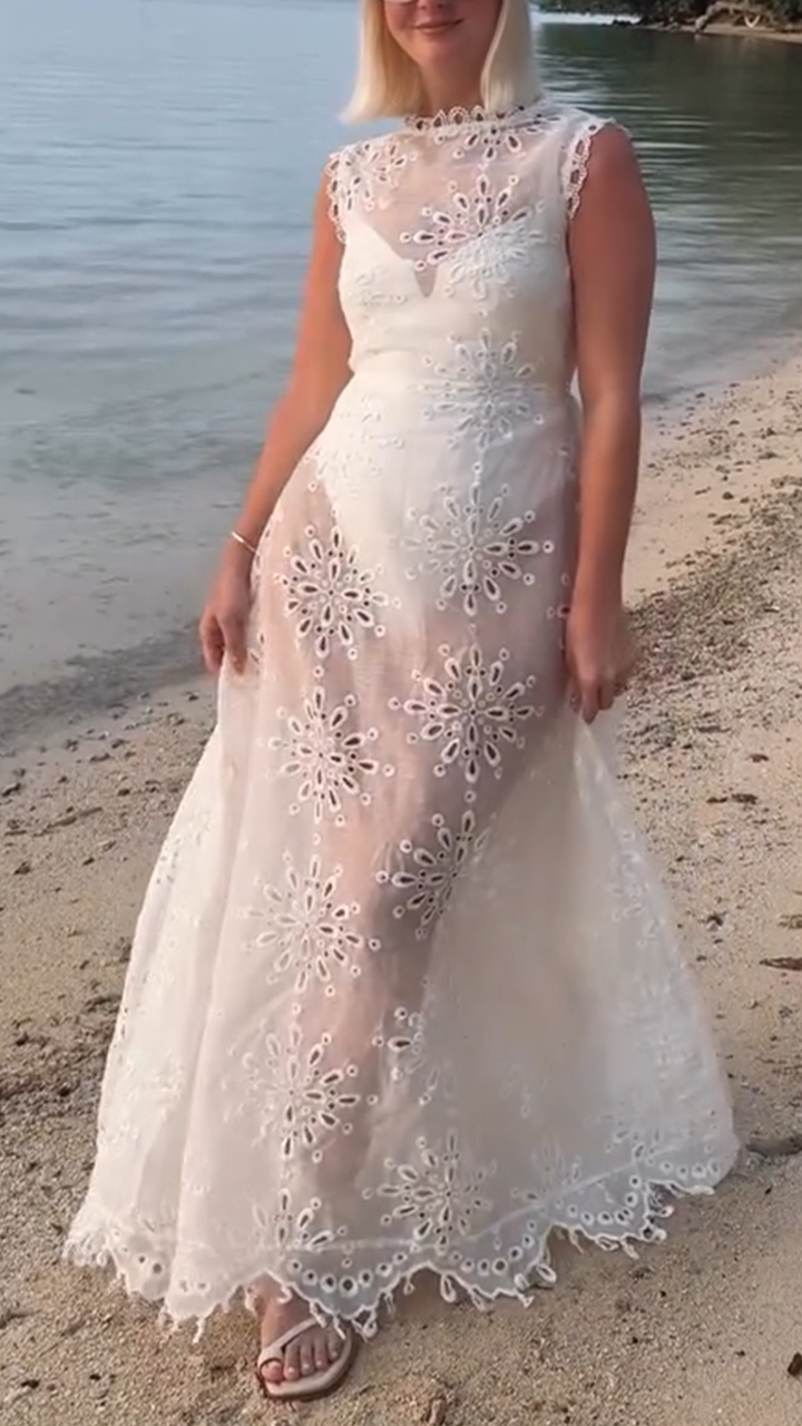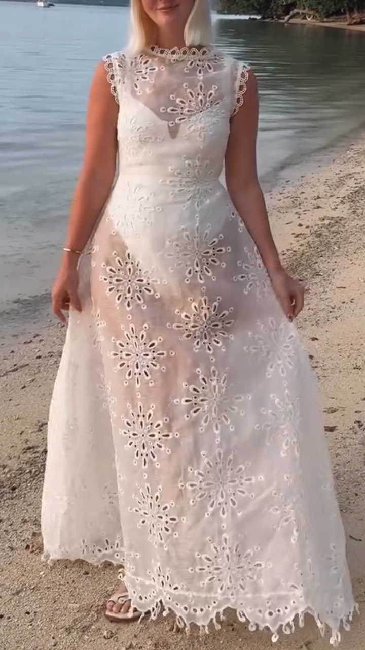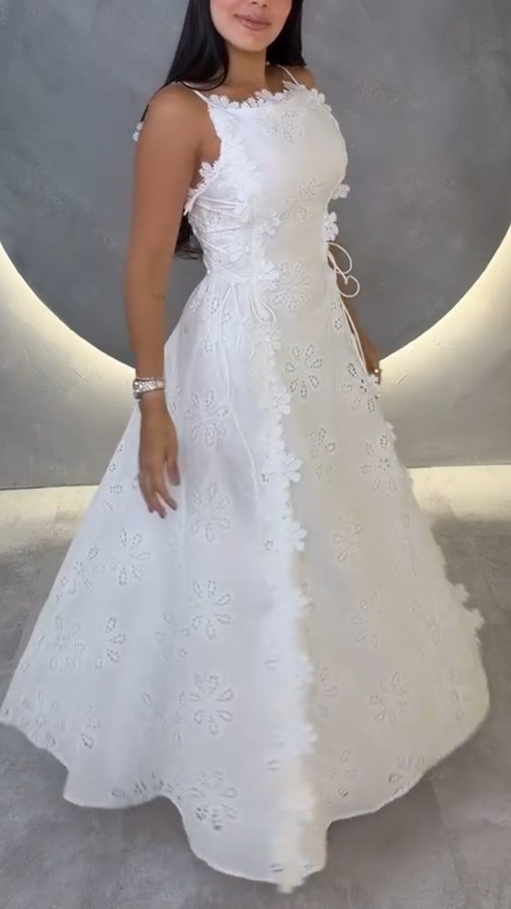 Women Halter Neck Crocheted Solid Color Elegant Dress
