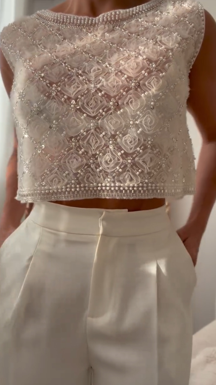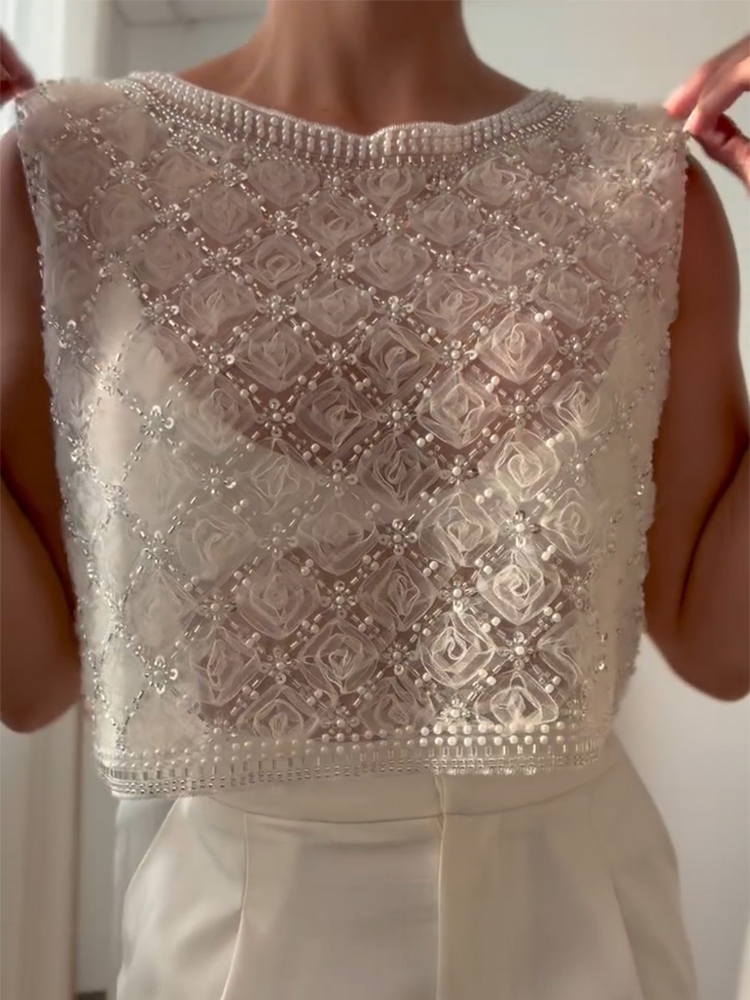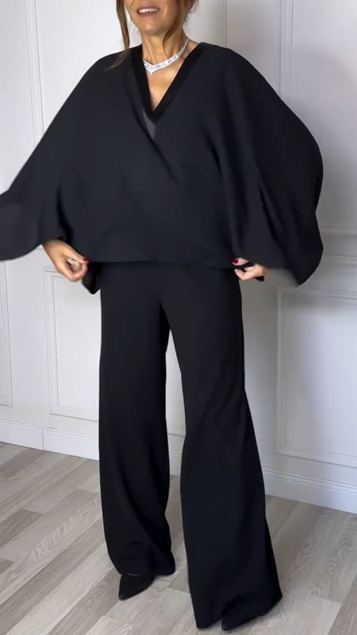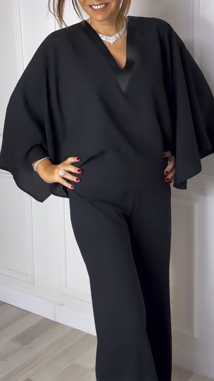 Women V-neck Hollow See Through Top + Pants Casual Suit