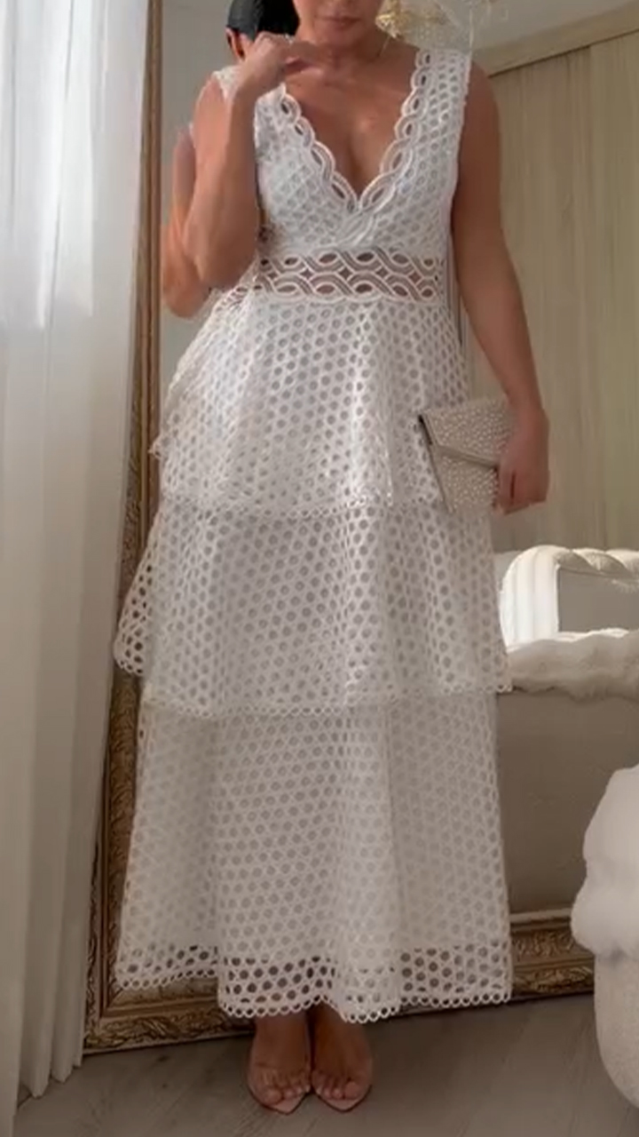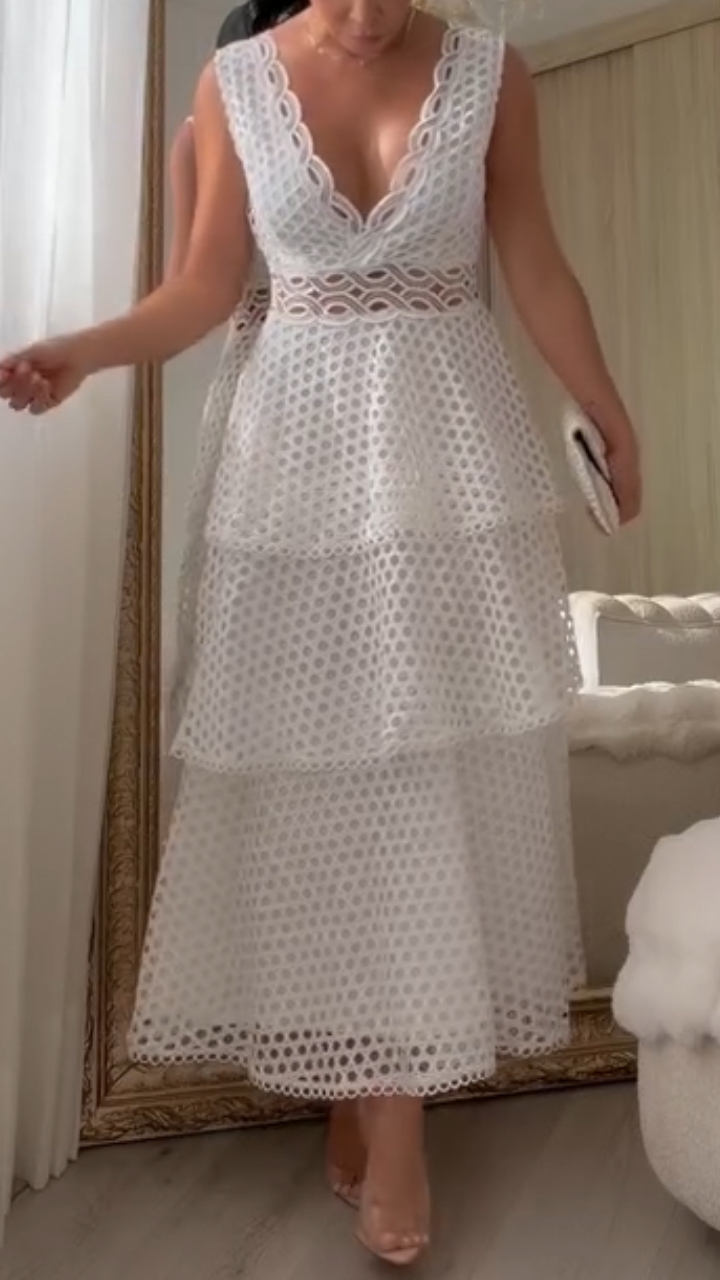 Women Deep V-neck Patchwork Hollow Elegant Temperament Dress