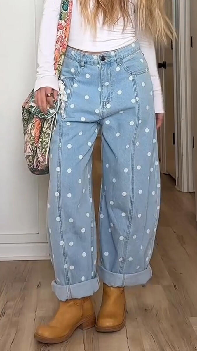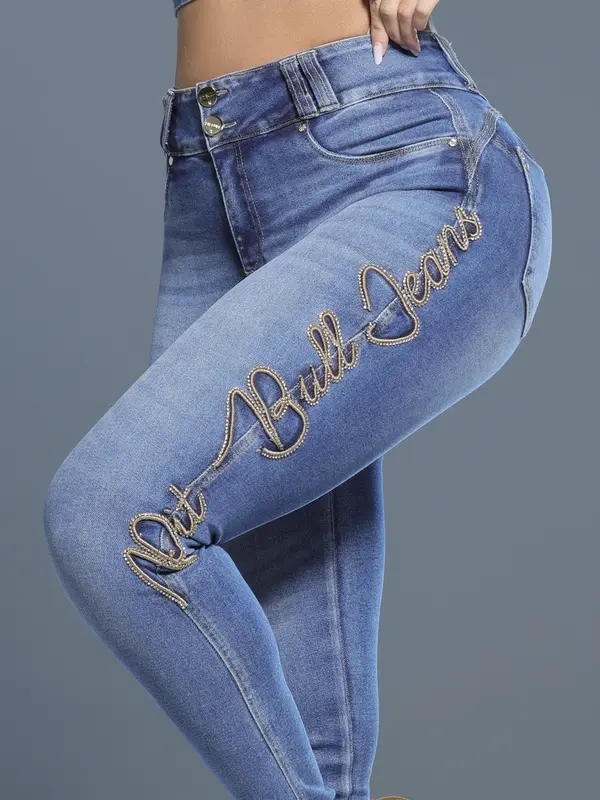 Women Hot Stamping Rhinestone Splicing Nail Bead Casual Jeans