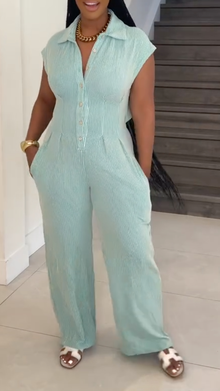 Women's Collared Button Casual Jumpsuit