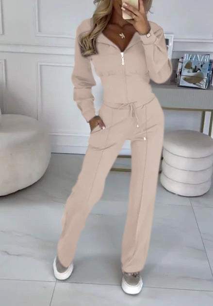 Women's Hooded Long-sleeved Casual Waist-hugging Suit