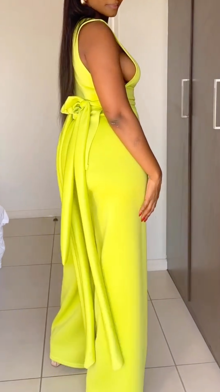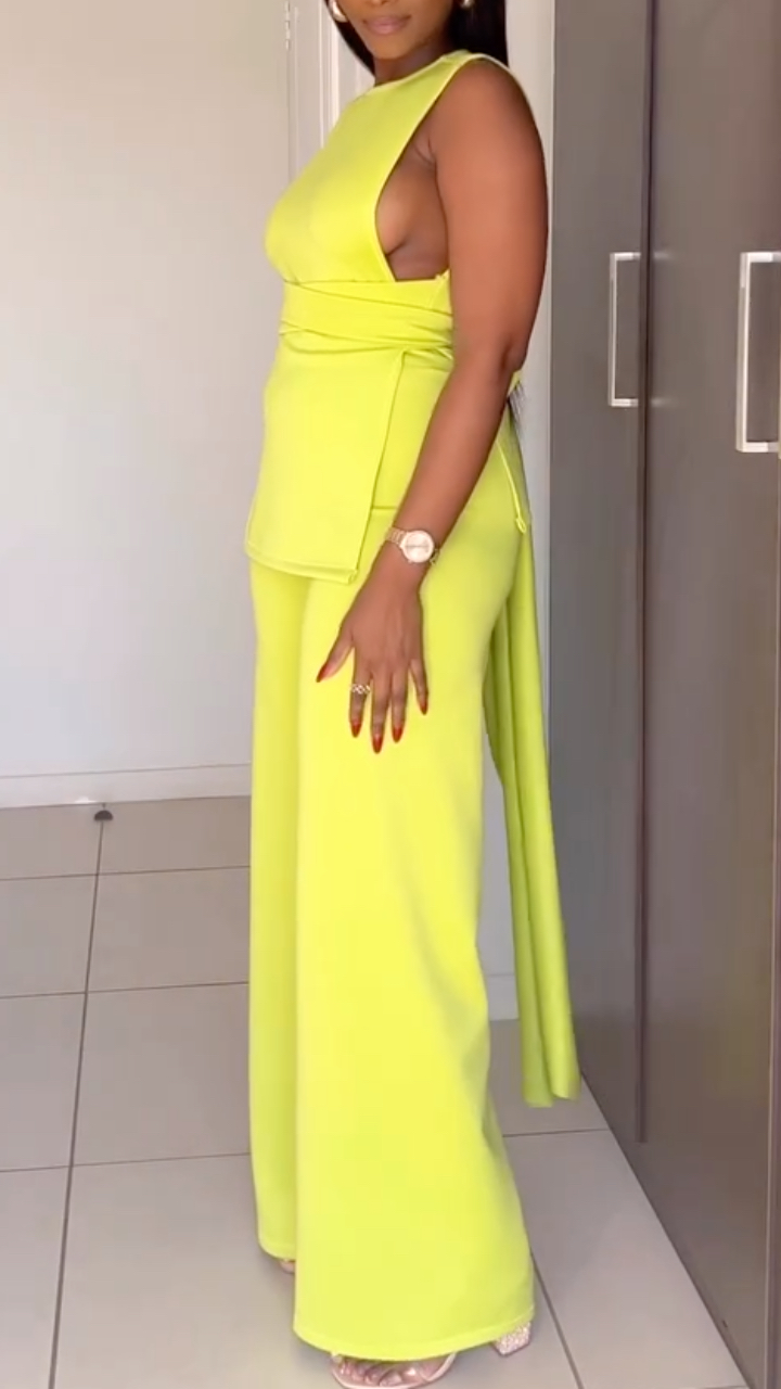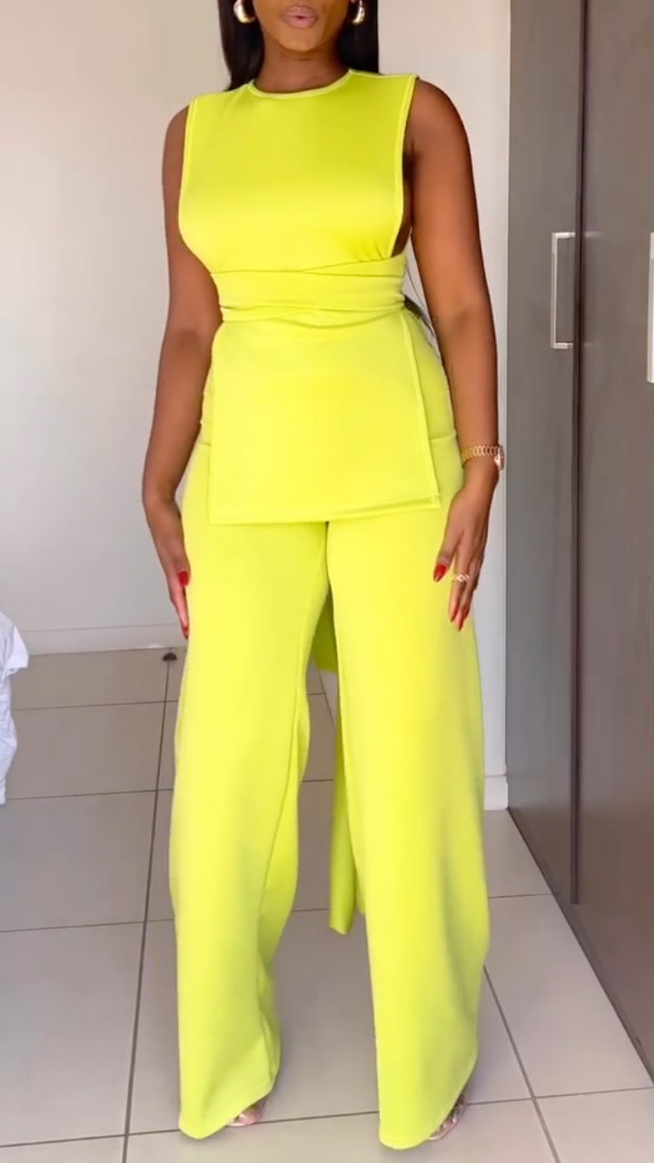 Women's Round Neck Tie-up Top + Fluorescent Casual Pants Set