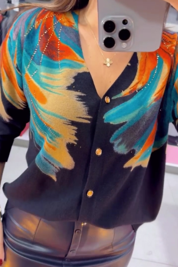 Women Casual Gradient Color Pattern Sweater