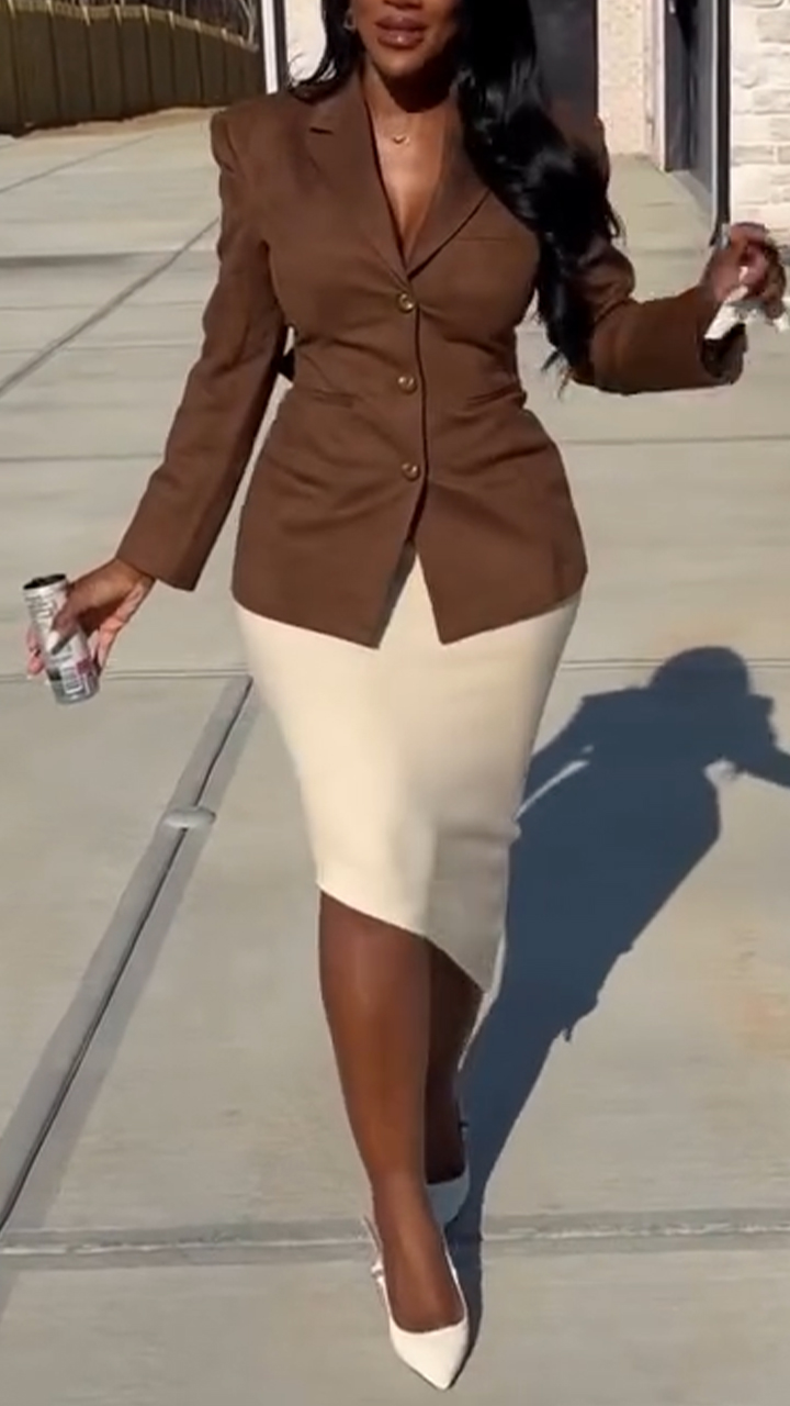 Women Collar Jacket+ Half Skirt Temperament Commuting Suit
