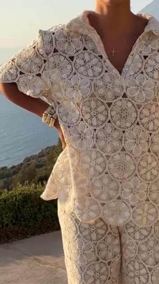 Women Collar Lace Hook Flower Vacation Style Set