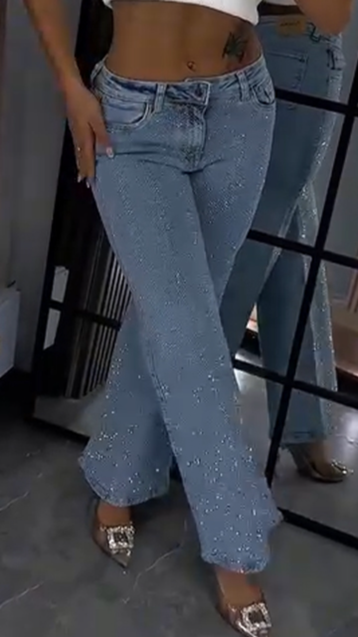 Women Rhinestone Washed Casual Jeans